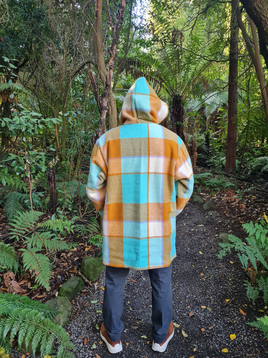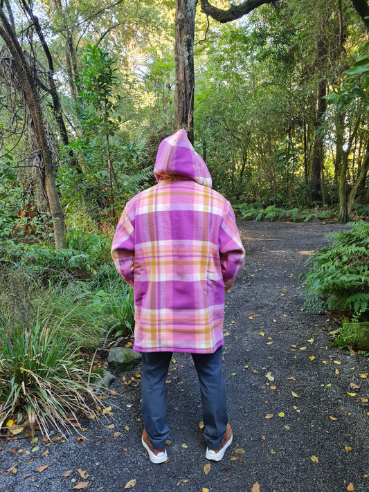 Elevate your look with our unique Raumoa Wool Anorak Jacket, a fusion of fashion and eco-consciousness. Crafted from upcycled wool blankets, it offers both warmth and environmental responsibility, making it the perfect wool jacket for those seeking sustainable style and comfort.